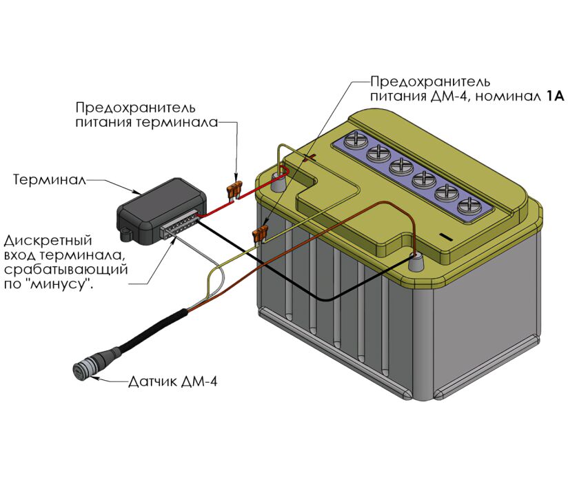 Принцип работы данного датчика основан на выявлении вибрации, возникающей при работе двигателя. Состояние двигателя (работа/остановка) датчик передает в терминал GPS/ГЛОНАСС мониторинга по дискретному выходу.