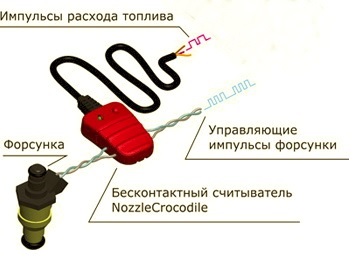 Для целей измерения расхода топлива используются бесконтактные считыватели импульсов форсунки, например датчик «NOZZLE CROCODILE».