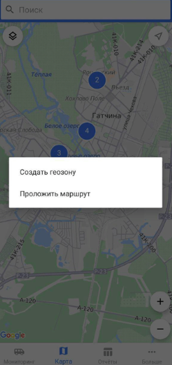 Создание геозоны по долгому нажатию на карте