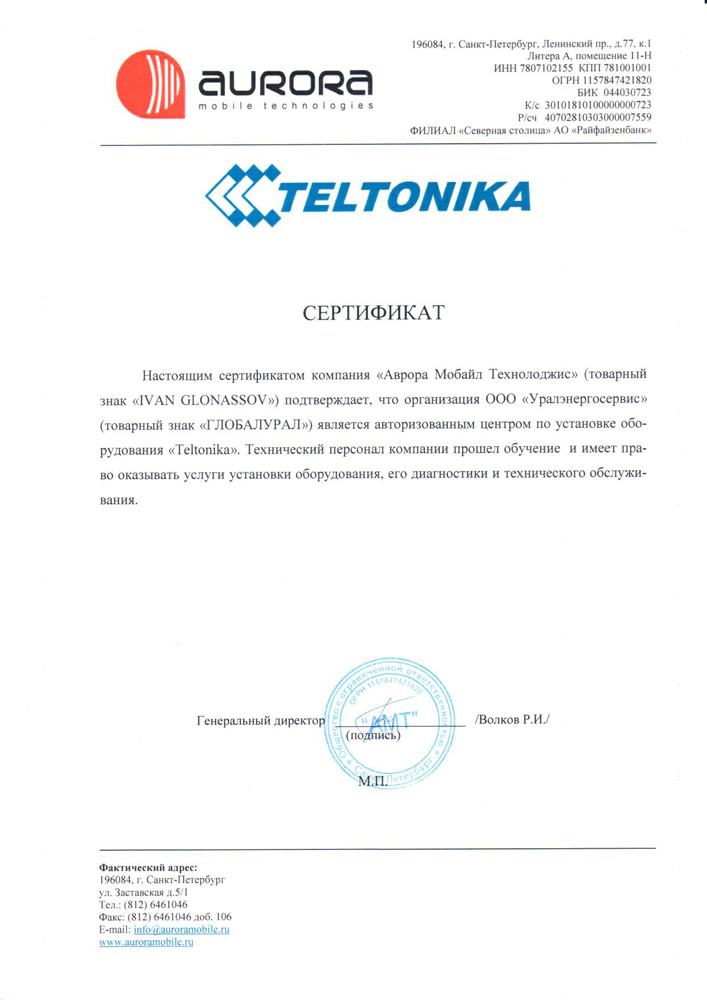 Гарантия на оборудование спутникового мониторинга и датчики уровня топлива составляет три года.
