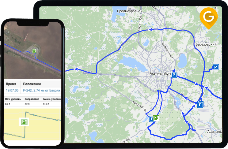 Все заправки и сливы топлива фиксируются системой автоматически. Данные можно увидеть в отчетах на компьютере, а также посмотреть в мобильном приложении на телефонах iPhone, Android.
